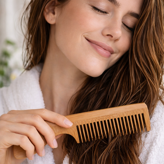 Unsere Haarbürsten und Kämme aus Holz – gefertigt aus Birnenholz, Olivenholz und Bambus – pflegen die Kopfhaut sanft, fördern die Blutzirkulation und unterstützen gesundes Haarwachstum – ganz ohne Plastik.