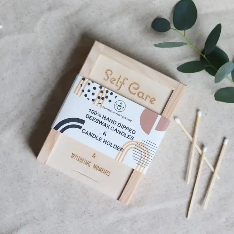 Jede Kerze ist ein Unikat, handgetaucht in unserer Imkerei in Hertfordshire, UK, ohne synthetische Zusätze, Paraffine oder Farbstoffe. Das Set vereint hochwertige Materialien: Bienenwachs, Messing, Echtholz und Baumwolle – alles naturbelassen und nachhaltig verarbeitet.