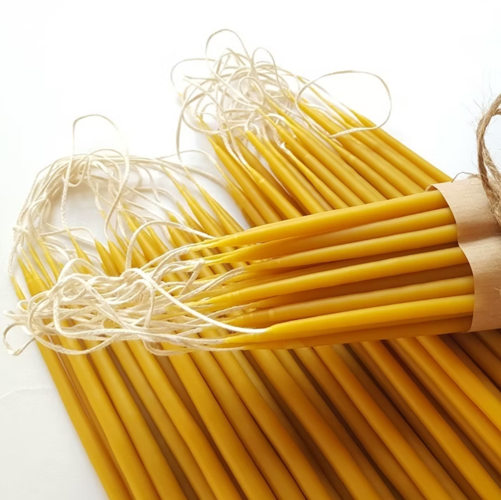 Jede Kerze ist ein Unikat – mit feinen Spuren des Handwerks, natürlichen Farbvariationen von hellem Strohgelb bis tiefem Honigton und einem sanften, unaufdringlichen Duft nach Bienenwachs. Das Set enthält zehn schlanke, elegante Stabkerzen, die vielseitig einsetzbar sind – ob für Chanukka, spirituelle Zeremonien, Meditation, Geburtstagsfeiern oder besondere Momente im Alltag.
