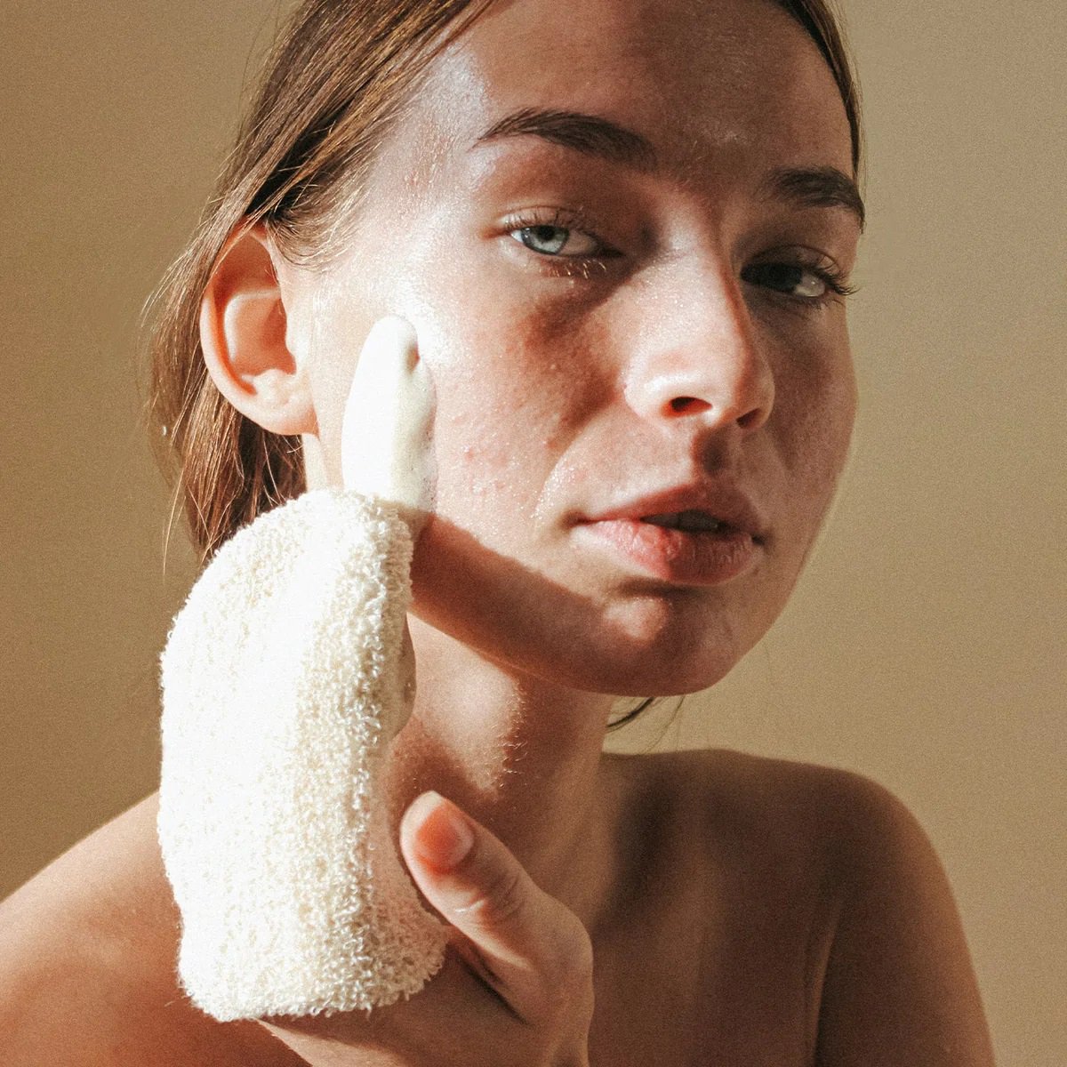 Sanfte Reinigung für empfindliche Haut – Gesichtsreinigungshandschuh aus 90 % Bio-Baumwolle & 10 % Elastan