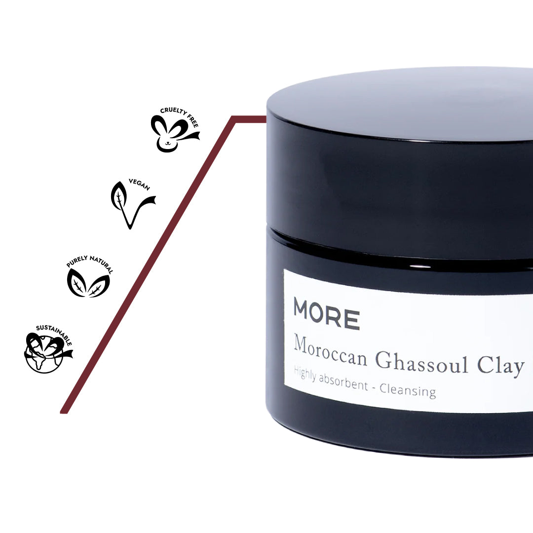 Klärend, regenerierend & glättend: Ghassoul absorbiert sanft überschüssigen Talg, Schmutz und abgestorbene Hautzellen, ohne die Haut zu reizen. Die enthaltenen Mineralien regen die Mikrozirkulation an, fördern die Zellerneuerung und wirken entgiftend, indem sie Umweltgifte binden und ausleiten. So erscheint die Haut sichtbar glatter, ebenmäßiger und regeneriert – ideal bei Unreinheiten, vergrößerten Poren oder fahlem Teint.