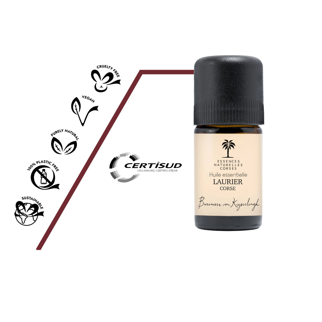 Der Lorbeer (Laurus nobilis) gedeiht in der wilden Macchia Korsikas, wo er an sorgfältig ausgewählten Naturstandorten unter biodynamischen Bedingungen wächst. Die endemischen Pflanzen werden von Hand geerntet und schonend wasserdampfdestilliert – aus ihren Blättern und Zweigen entsteht ein ätherisches Öl mit klarer, kraftvoller Wirkung: antibakteriell, antifungal, schmerzstillend und nervenberuhigend. Sein warm-herber Duft schenkt Mut, stärkt das Selbstvertrauen und bringt Ruhe in Zeiten von Stress, Unsicherheit oder innerer Unruhe. Die Destillation erfolgt in kleinen Chargen direkt vor Ort und bewahrt die volle Reinheit und Wirkkraft dieser besonderen Pflanze. Aus rund 1 Tonne frischem Pflanzenmaterial entstehen 3–4 kg hochwertiges ätherisches Öl – ein naturreines Destillat, das Körper, Geist und Seele auf ganzheitliche Weise unterstützt.