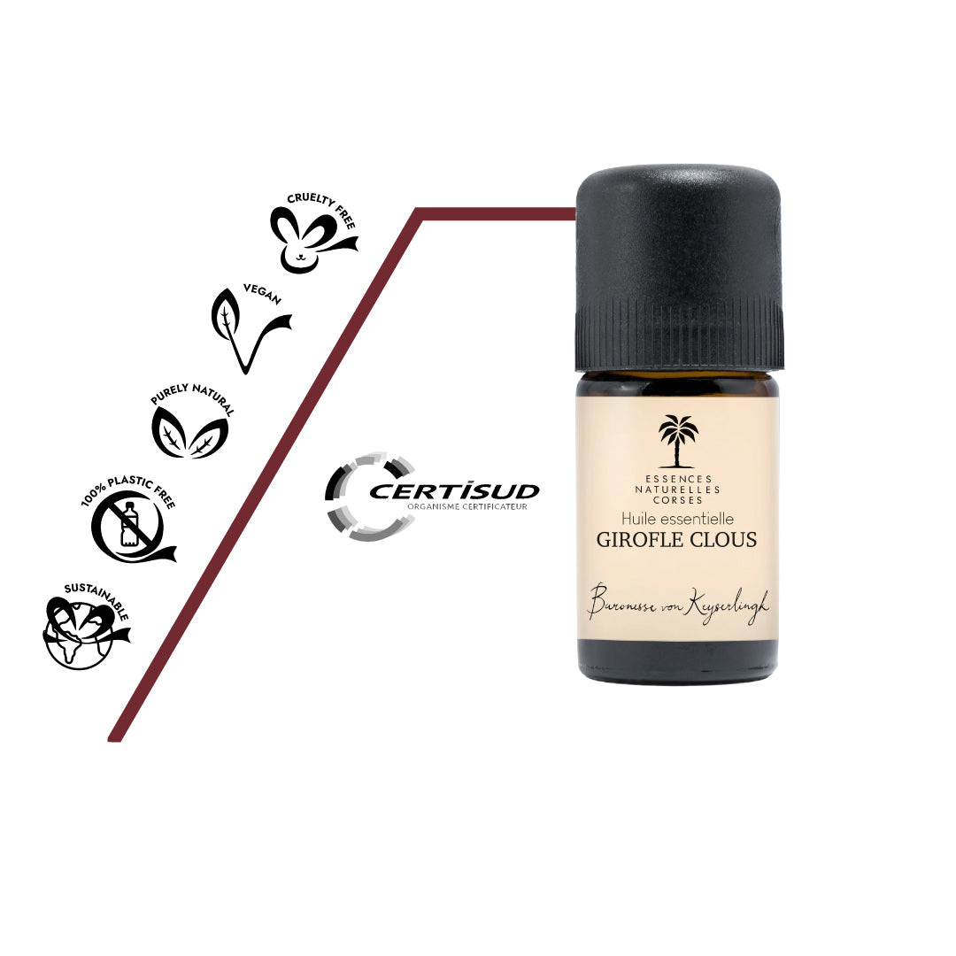 Die aromatischen Blütenknospen des Nelkenbaums (Eugenia caryophyllus), auch „Blüten der Götter“ genannt, stammen aus kontrolliert biologischem Anbau auf Sri Lanka. Aus ihnen entsteht durch schonende Wasserdampfdestillation ein ätherisches Öl von außergewöhnlicher Potenz: betäubend, stark antibakteriell, antiviral, antifungal und zugleich mental belebend. Sein intensiver, würzig-warmer Duft erinnert an Gewürzmärkte, regt die Sinne an und stärkt in Phasen von Schwäche und Erschöpfung.